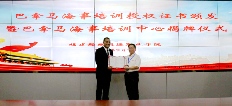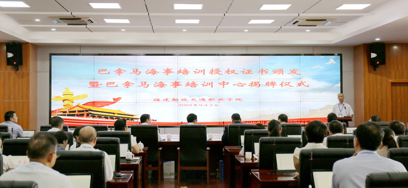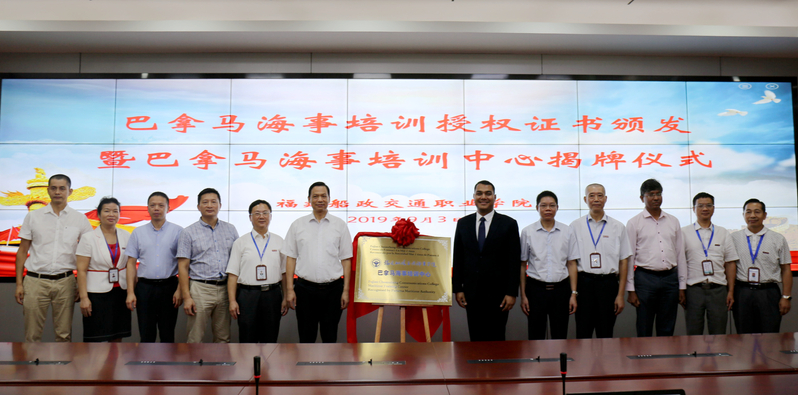 9月3日,巴拿馬海事培訓(xùn)授權(quán)證書頒發(fā)暨巴拿馬海事培訓(xùn)中心揭牌儀式在福建船政交通職業(yè)學(xué)院北校區(qū)舉行。福建省教育廳副廳長(zhǎng)王飏、福建省交通運(yùn)輸廳副巡視員林拾慶、巴拿馬共和國(guó)駐上??傤I(lǐng)事館副總領(lǐng)事Jaen Celada(哈恩)、孟加拉國(guó)遠(yuǎn)洋海事學(xué)院校長(zhǎng)馬洛夫等出席儀式。儀式由福建船政交通職業(yè)學(xué)院黨委書記張海明主持。