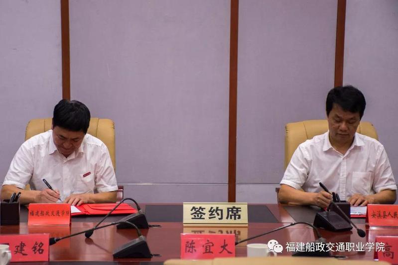 為全面貫徹落實(shí)國(guó)務(wù)院《國(guó)家職業(yè)教育改革實(shí)施方案》,進(jìn)一步推動(dòng)我院“不忘初心、牢記使命”主題教育的深入開(kāi)展,提升學(xué)院服務(wù)社會(huì)能力。9月25日,學(xué)院校與安溪縣戰(zhàn)略合作協(xié)議在安溪縣人民政府舉行。學(xué)院黨委副書記陳宜大、副院長(zhǎng)高汝武與安溪縣副縣長(zhǎng)丁建銘等領(lǐng)導(dǎo)出席了簽約儀式;安溪縣政府辦、教育局、人社局、農(nóng)業(yè)農(nóng)村局、退役軍人事務(wù)局、華僑職校等部門負(fù)責(zé)人,我院教務(wù)處、基建處、繼教部、機(jī)械工程系、管理工程系等負(fù)責(zé)人參加簽約儀式。