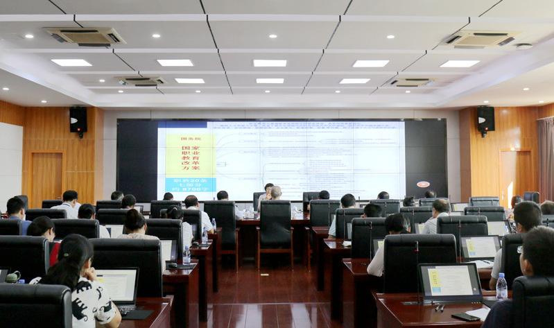 9月25日下午,學院特邀國家教育行政學院學術委員會主任、職業(yè)教育研究中心主任、中國職教學會常務理事、職教學會學術委員會委員、中華職教社常務理事、專家委員會副主任邢暉教授蒞校作“職業(yè)教育新政策、質(zhì)量提升、團隊建設”專題講座。院領導張海明、陳錦輝、張輝、陳艷紅出席,全體中層干部,各系主任、書記、教研室主任參加。講座由學院黨委委員、副院長陳艷紅主持。