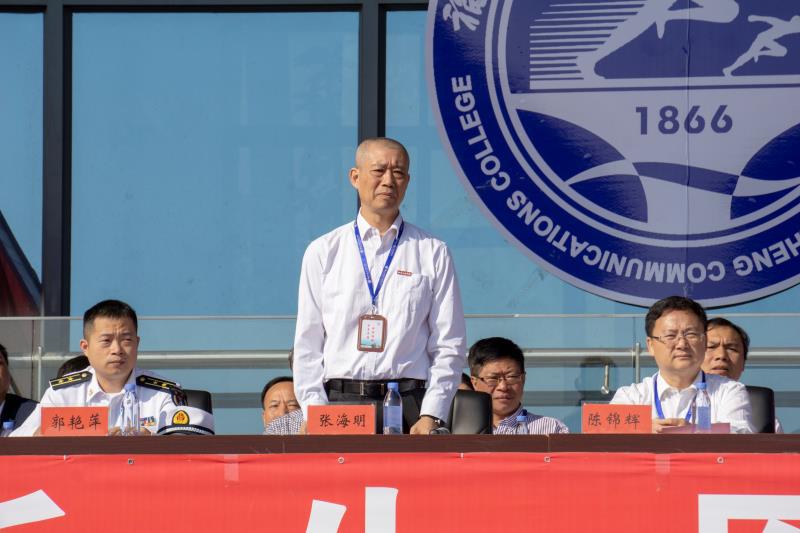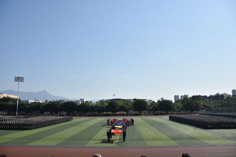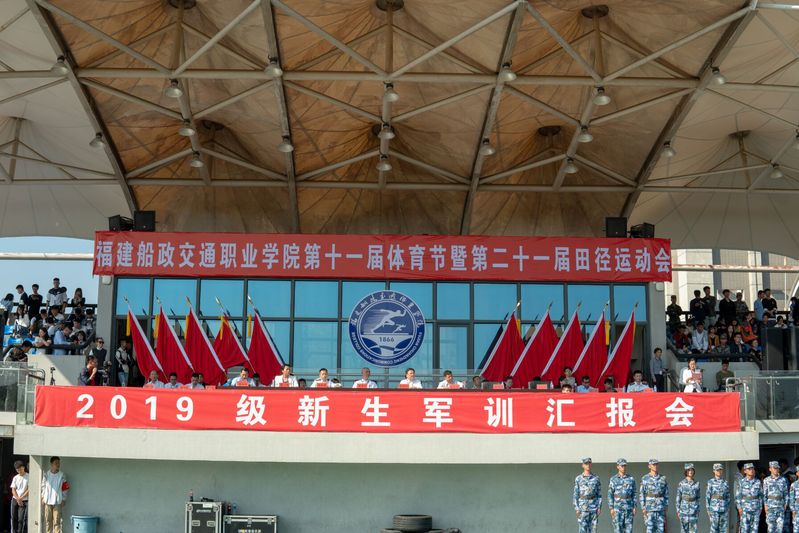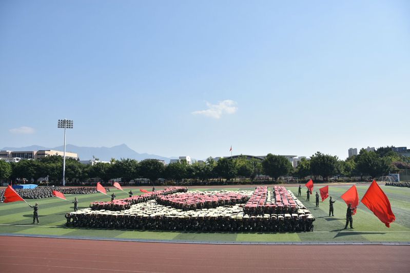 上午9時(shí),2019級(jí)6400余名學(xué)生身著軍訓(xùn)服裝,在軍訓(xùn)旗的引領(lǐng)下,踏著分列式進(jìn)行曲的鼓點(diǎn),步伐整齊、精神高昂、口號(hào)響亮地走向主席臺(tái)接受領(lǐng)導(dǎo)來(lái)賓的檢閱。緊接著,進(jìn)行了匕首操、隊(duì)列示范、擒敵拳、戰(zhàn)術(shù)演練、千人方陣表演。千人方陣表演,由1000名軍訓(xùn)新生組成的方陣,先后擺出“1866、2019、153、校徽、文化船政、創(chuàng)新船政、質(zhì)量船政”等形態(tài),用整齊劃一的動(dòng)作、新穎的造型、響亮的口號(hào)贏得全場(chǎng)陣陣掌聲。