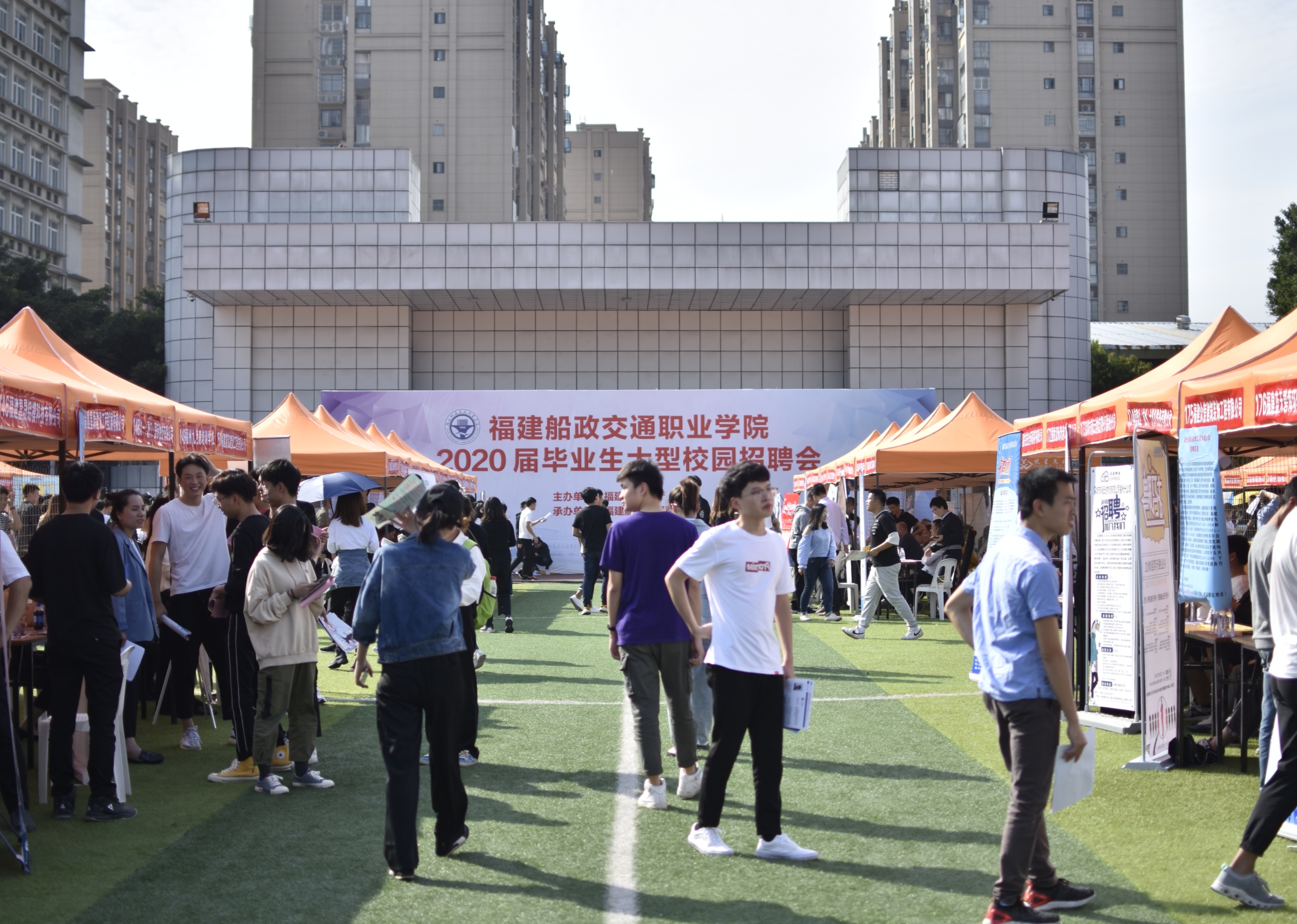 為切實(shí)做好畢業(yè)生就業(yè)工作,更好的為畢業(yè)生與用人單位搭建雙向選擇平臺(tái)。2019年11月13日,我院在南區(qū)田徑場(chǎng)舉行2020屆畢業(yè)生大型校園招聘會(huì)。