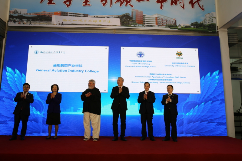 為積極響應(yīng)國家“一帶一路”倡議,加快推進(jìn)我省通用航空產(chǎn)業(yè)發(fā)展,培養(yǎng)產(chǎn)業(yè)緊缺的高素質(zhì)技術(shù)技能人才,12月2日上午,由福建船政交通職業(yè)學(xué)院、匈牙利德布勒森大學(xué)和摩根斯達(dá)集團(tuán)共同推動(dòng)成立的“通用航空產(chǎn)業(yè)學(xué)院”“通用航空應(yīng)用技術(shù)研發(fā)中心”在福建船政交通職業(yè)學(xué)院成立。
