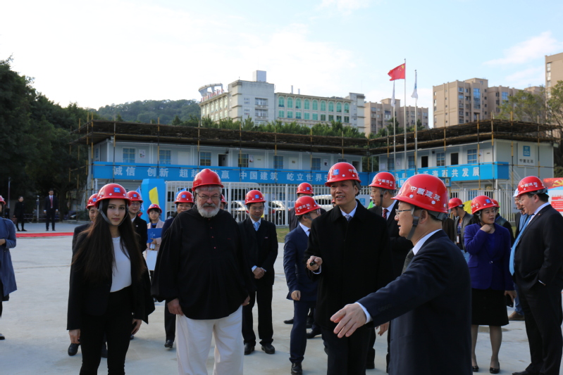 揭牌儀式后,匈牙利總理首席顧問蘇契·蓋佐、福建省委教育工委書記、省教育廳廳長林和平等一行還參觀了學(xué)院在建的綜合實(shí)訓(xùn)大樓,大樓建設(shè)規(guī)劃中包含了通用航空生產(chǎn)性實(shí)訓(xùn)基地。
