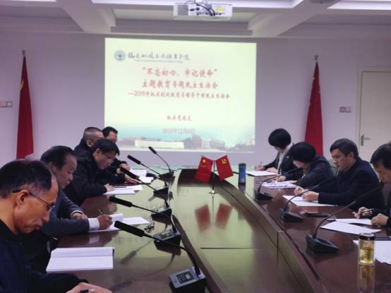 12月6日上午9點,在辦公樓307會議室召開了“不忘初心、牢記使命”機關(guān)副處級黨員領(lǐng)導(dǎo)干部專題民主生活會,學(xué)院黨委副書記陳宜大專程到會指導(dǎo)。