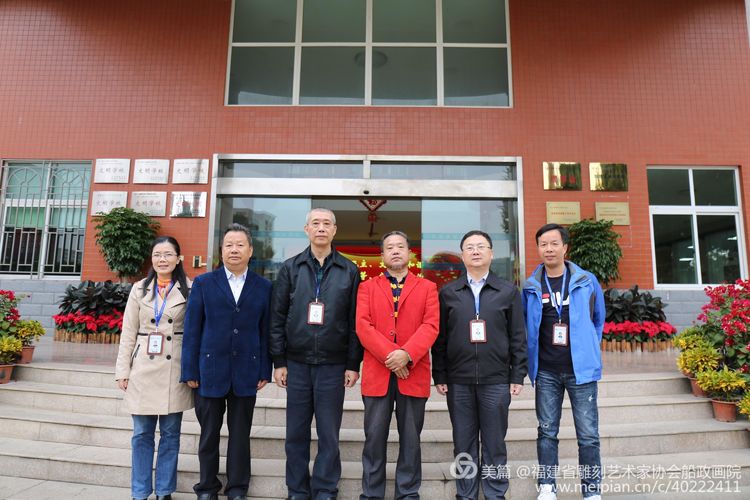 福建船政交通職業(yè)學(xué)院院長陳錦輝(右2)、書記張海明(左3)、福建省雕刻藝術(shù)家協(xié)會船政畫院執(zhí)行院長陳文漢、副院長李靖商談捐贈船政主題的書畫作品后集體合影。