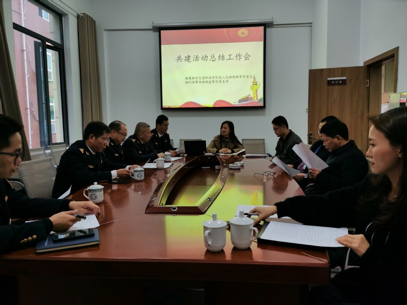 12月20日下午,成人與繼續(xù)教育黨總支與福州海事局船舶監(jiān)督處黨支部在我院3號樓黨員活動室開展黨務(wù)共建總結(jié)活動。會議由成人與繼續(xù)教育部黨總支第一支部書記王雪梅主持。福州海事局政委王瑞瑯、調(diào)研員魏愚、副局長阮召彬,我院成人與繼續(xù)教育部劉群勇書記、航海技術(shù)系江明光主任等出席了本次會議。