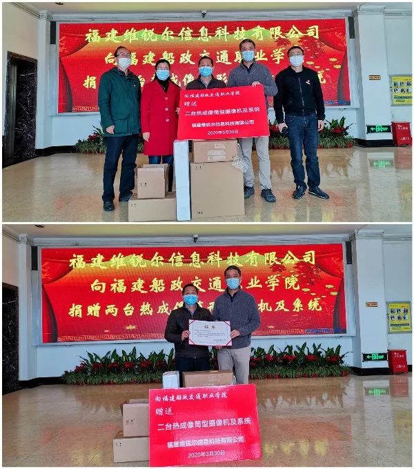 張淥總經(jīng)理代表福建維銳爾信息科技有限公司向?qū)W院捐贈2臺熱成像筒型攝像機(jī)及系統(tǒng)。