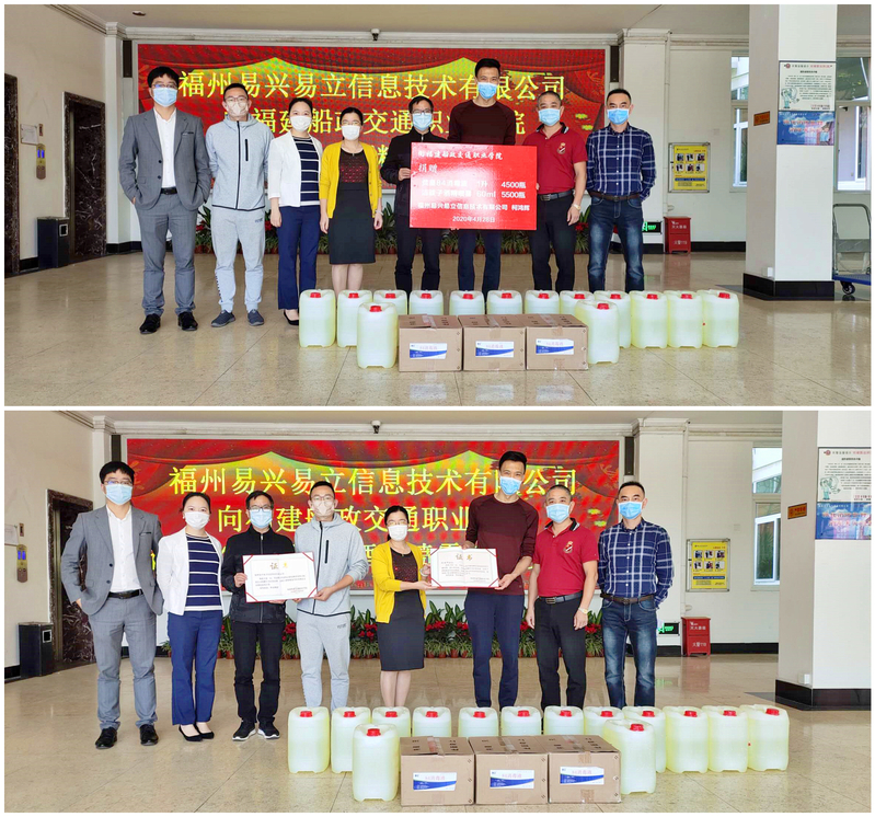 日前,愛心校友企業(yè)福州易興易立信息技術有限公司為學院訂購了4500瓶84消毒液和5500瓶酒精噴霧,總價值近6萬元。