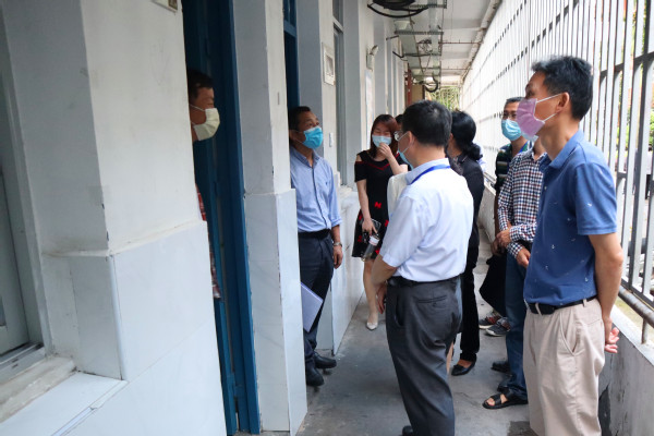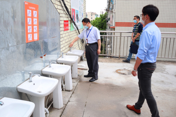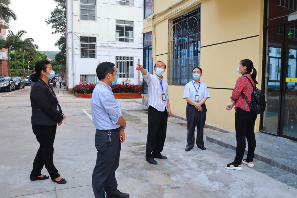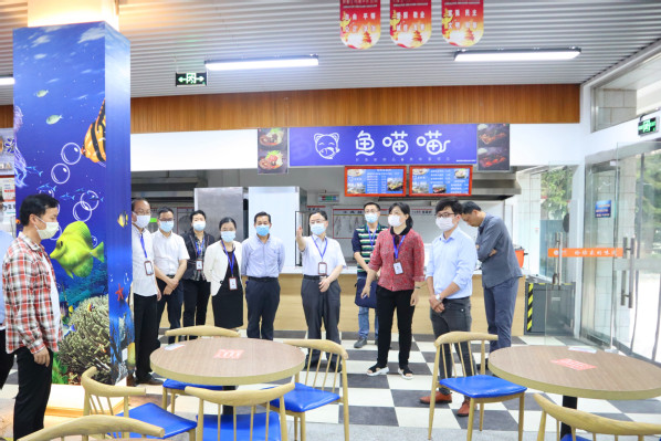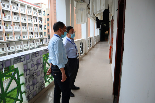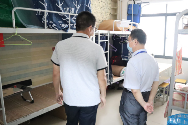 陳錦輝院長一行自高蓋山校區(qū)起,先后步行至學(xué)院南區(qū)、北區(qū)。途中,深入學(xué)院11個教學(xué)系,對學(xué)生宿舍、學(xué)生食堂、教工食堂、教學(xué)樓等重點區(qū)域進(jìn)行仔細(xì)檢查,并認(rèn)真聽取了各系、各工作組負(fù)責(zé)人關(guān)于疫情防控及開學(xué)準(zhǔn)備情況的匯報。