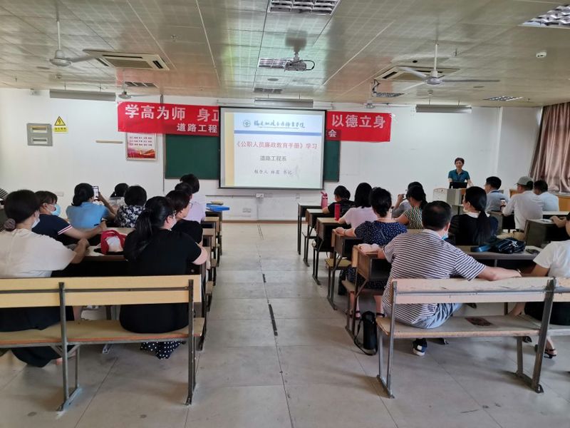 為深入貫徹黨的十九大精神,全面加強(qiáng)教師隊(duì)伍師德師風(fēng)建設(shè),同時(shí)響應(yīng)學(xué)院“樹師德、正師風(fēng),爭做‘四有’好老師”的號(hào)召,道路工程系于2020623日利用例會(huì)學(xué)習(xí)時(shí)間對(duì)全體教職工進(jìn)行了“師德師風(fēng)”專題培訓(xùn)。