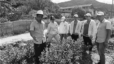 圖為永泰縣白杜村村干部向隊(duì)員介紹茉莉花種植情況