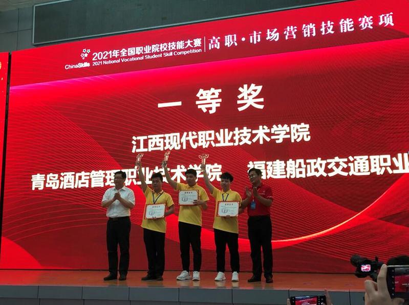 6月22日晚,2021年全國(guó)職業(yè)院校技能大賽高職組“市場(chǎng)營(yíng)銷技能”賽項(xiàng)在江西現(xiàn)代職業(yè)技術(shù)學(xué)院落下帷幕。經(jīng)過(guò)兩天的現(xiàn)場(chǎng)精彩角逐,我院經(jīng)濟(jì)與管理學(xué)院市場(chǎng)營(yíng)銷專業(yè)學(xué)生檀松景、楊榮鈞、蔡靜怡、陳偉鑫組成的團(tuán)隊(duì)獲得全國(guó)市場(chǎng)營(yíng)銷技能大賽一等獎(jiǎng)!指導(dǎo)教師陳華、何欣梅老師獲得“優(yōu)秀指導(dǎo)教師”獎(jiǎng)。