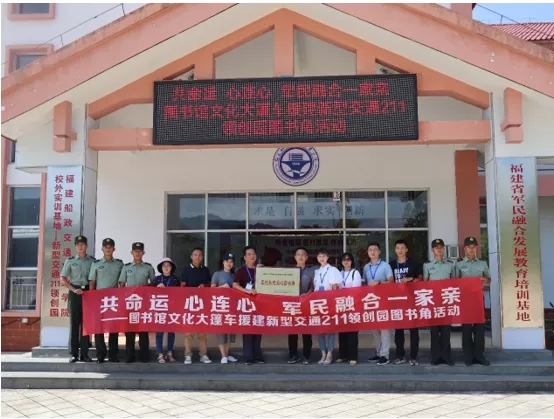 8月29日上午,圖書館黨員代表赴武夷山福建船政交通職業(yè)學(xué)院校外實(shí)訓(xùn)基地-新型交通211領(lǐng)創(chuàng)園,開展圖書館文化大篷車援建新型交通211領(lǐng)創(chuàng)園圖書角活動(dòng)。211領(lǐng)創(chuàng)園相關(guān)負(fù)責(zé)人、東部戰(zhàn)區(qū)陸軍軍民融合汽車駕駛培訓(xùn)學(xué)兵營教練員、學(xué)兵代表共同參與了此次活動(dòng)。