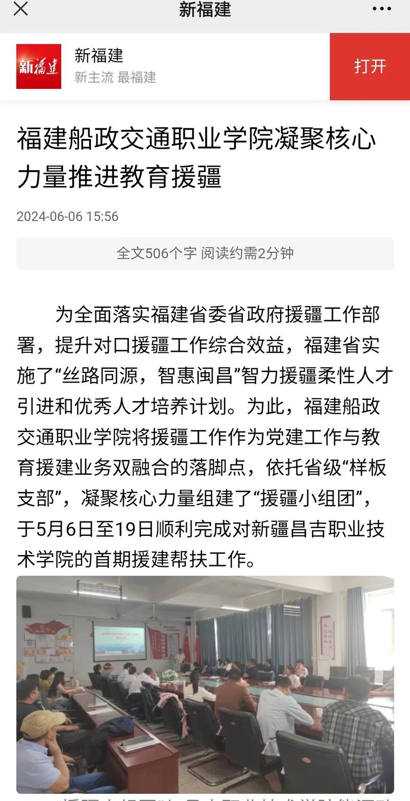 據介紹,福建船政交通職業(yè)學院“援疆小組團”后續(xù)將協(xié)助昌吉職院能源動力工程分院建設新能源汽車專業(yè)群、組建產業(yè)學院、強化校企合作等,致力把援疆工作做細做實做出成效。