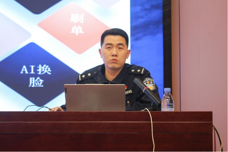 講座中,對(duì)湖派出所林城豪警官?gòu)男@反詐的意義、電信詐騙現(xiàn)狀、詐騙的特點(diǎn)、如何做好預(yù)防工作等方面展開(kāi),結(jié)合真實(shí)案例為同學(xué)們展示了網(wǎng)購(gòu)?fù)素?、盜竊QQ冒充好友、京東白條、AI換臉、刷單等常見(jiàn)詐騙類型的作案手法,揭示了電信詐騙的嚴(yán)重性和危害性。他指出,電信詐騙不僅給受害者帶來(lái)巨大的經(jīng)濟(jì)損失,更可能導(dǎo)致其陷入絕望和困境。因此,保護(hù)好自己的隱私信息,加強(qiáng)反詐宣傳和教育,提高學(xué)生的防范意識(shí)顯得尤為重要。