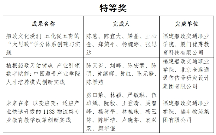 日前,省教育廳公布2024年省級(jí)教學(xué)成果獎(jiǎng)獲獎(jiǎng)成果名單。由我院主持的7項(xiàng)成果榮獲職業(yè)教育省級(jí)教學(xué)成果獎(jiǎng),其中:特等獎(jiǎng)3項(xiàng),一等獎(jiǎng)2項(xiàng),二等獎(jiǎng)2項(xiàng)。
