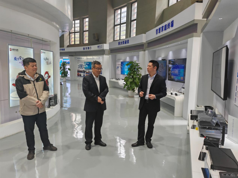 陳常暉副院長一行在在新大陸科技集團北京時代科技有限公司副總經(jīng)理周洪耀陪同下,實地參觀了公司的創(chuàng)新成果展示廳及研發(fā)實驗室,深入了解企業(yè)在信息技術(shù)領(lǐng)域尤其數(shù)據(jù)采集方面的最新成就。