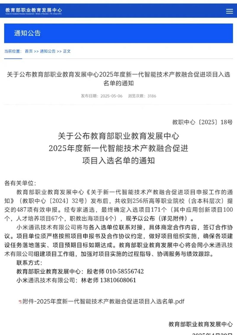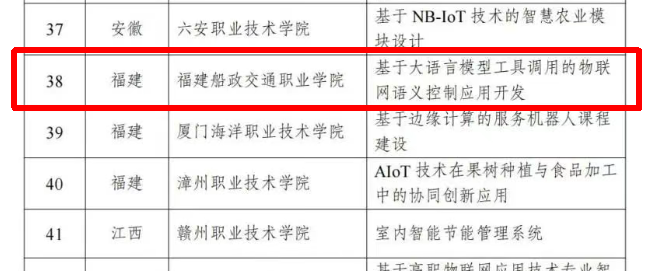 日前,教育部職業(yè)教育發(fā)展中心公布了2025年度新一代智能技術(shù)產(chǎn)教融合促進項目入選名單,我院報送的項目“基于大語言模型工具調(diào)用的物聯(lián)網(wǎng)語義控制應(yīng)用開發(fā)”入選為應(yīng)用創(chuàng)新項目。