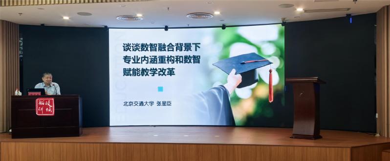 為深入貫徹落實國家教育數(shù)字化戰(zhàn)略行動,探索數(shù)智融合背景下專業(yè)發(fā)展新路徑,5月26日上午,學院特邀北京交通大學原副校長張星臣作 “數(shù)智融合背景下專業(yè)內涵重構和數(shù)智賦能教學改革”專題講座。學院副院長陳常暉出席,各二級學院負責人、專業(yè)帶頭人、新進教師等近100人參與。