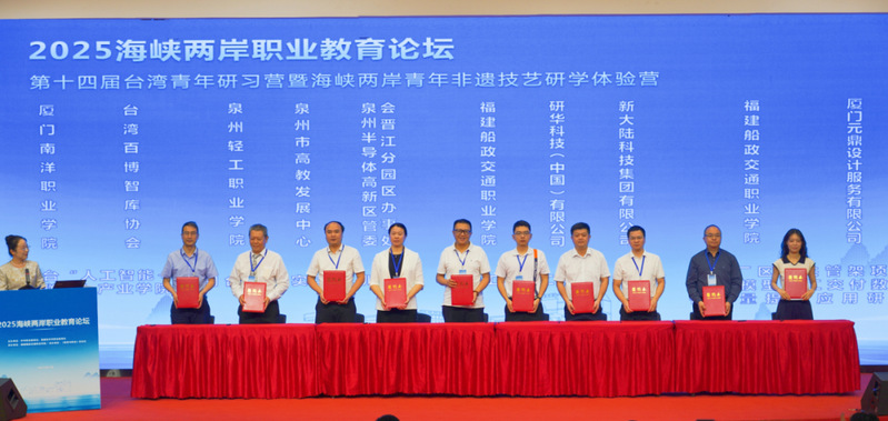 7月15日-17日,2025海峽兩岸職業(yè)教育論壇在福建省福州市成功舉行。此次論壇以“AI賦能職業(yè)教育”為主題,由中華職業(yè)教育社、福建省中華職業(yè)教育社聯(lián)合臺(tái)灣多家社會(huì)團(tuán)體共同主辦,福建船政交通職業(yè)學(xué)院承辦,《教育與職業(yè)》雜志社協(xié)辦。論壇涵蓋開(kāi)幕式、揭牌儀式、項(xiàng)目簽約、學(xué)術(shù)報(bào)告、嘉賓對(duì)話、文化活動(dòng)、現(xiàn)場(chǎng)教學(xué)等多項(xiàng)議程,來(lái)自兩岸的職業(yè)教育專家、學(xué)者、院校和企業(yè)代表等230余人出席活動(dòng)。