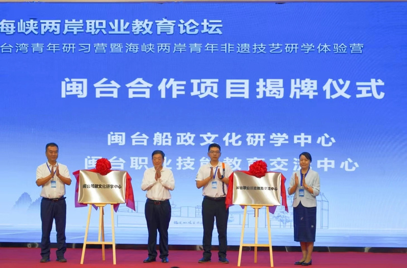 揭牌儀式上,我院“閩臺(tái)船政文化研學(xué)中心”“閩臺(tái)職業(yè)技能教育交流中心”成功揭牌。據(jù)悉,研學(xué)中心將整合校內(nèi)外場(chǎng)館資源,推動(dòng)閩臺(tái)青少年研學(xué)實(shí)踐常態(tài)化,通過(guò)文化浸潤(rùn)、技藝實(shí)訓(xùn)與歷史探尋,為深化兩岸融合發(fā)展、賡續(xù)中華文脈注入青春動(dòng)能。交流中心將聯(lián)合閩臺(tái)高校及行業(yè)企業(yè),深化閩臺(tái)高校“校校企”聯(lián)合培養(yǎng)項(xiàng)目,推動(dòng)師資互聘、課程共建、科研合作、技能認(rèn)證互通及銜接培養(yǎng),為閩臺(tái)產(chǎn)業(yè)融合發(fā)展提供高技能人才支撐。
