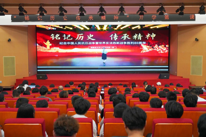 9月6日上午,《“銘記歷史,傳承精神——紀(jì)念中國(guó)人民抗日戰(zhàn)爭(zhēng)暨世界反法西斯戰(zhàn)爭(zhēng)勝利80周年”福建省大中小學(xué)開(kāi)學(xué)第一課》在福建教育電視臺(tái)、學(xué)習(xí)強(qiáng)國(guó)福建平臺(tái)等播出。我院組織馬克思主義學(xué)院全體教師及各二級(jí)學(xué)院學(xué)生代表集中收看。