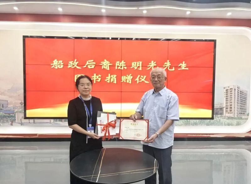 陳明光先生與船政淵源深厚,此次到校捐贈了個人收藏的船政歷史圖書,內容涉及抗戰(zhàn)船政人物、福州抗日志士等。他希望以書為橋,讓船政精神在年輕一代中延續(xù)。