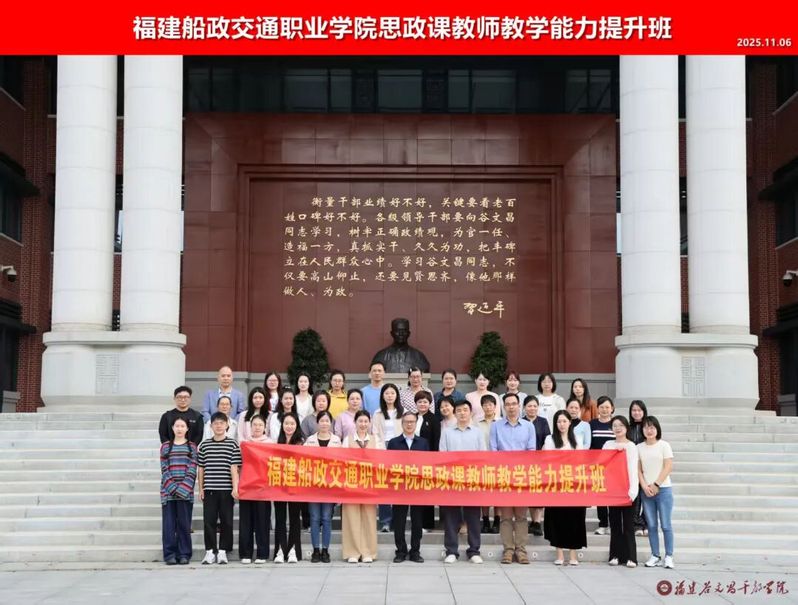 為深入學(xué)習(xí)貫徹黨的二十屆四中全會精神,深化思政課教學(xué)改革,提升教師思想政治素養(yǎng)與教學(xué)實(shí)踐能力,2025年11月5日至8日,學(xué)院思政課教師教學(xué)能力提升專題研修班在福建谷文昌干部學(xué)院成功舉辦,學(xué)院黨委書記陳宜大、黨委副書記張輝出席此次研修班,宣傳統(tǒng)戰(zhàn)部、馬克思主義學(xué)院負(fù)責(zé)人及馬克思主義學(xué)院全體教師一同參加培訓(xùn)。