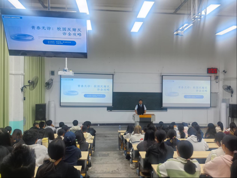 講座緊扣“青春無詐”主題,結(jié)合講師多年金融反詐實踐經(jīng)驗,以“精準識騙、優(yōu)化管理、防護普法、升級反詐、反詐急救、踐行反詐”六大板塊為框架展開:從“冒充客服退款”“刷單返利”等學生群體常見騙局的識別技巧,到校園賬戶安全管理、個人信息保護的具體方法;從《反電信網(wǎng)絡(luò)詐騙法》等法規(guī)解讀,到遭遇詐騙后的緊急止損流程;再到倡導“全民反詐”理念、鼓勵師生主動參與宣傳,內(nèi)容既具專業(yè)性又貼近日常,為師生織密反詐“知識網(wǎng)”。通過真實案例剖析、結(jié)合學生的興趣熱點互動,將晦澀的反詐要點轉(zhuǎn)化為易懂的生活指南,現(xiàn)場師生積極提問,氛圍熱烈。