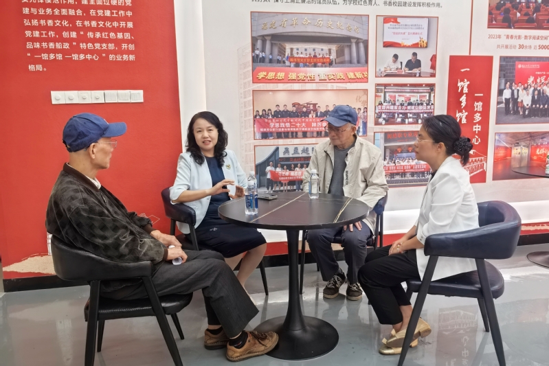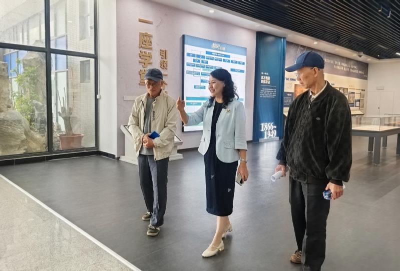 儀式結(jié)束后,陳明光先生和葉華先生在陳群及圖書館負(fù)責(zé)人的陪同下參觀校史館,并進(jìn)行座談交流。陳群介紹了學(xué)院辦學(xué)歷程和成效,她表示,學(xué)院始終秉承船政學(xué)堂 “產(chǎn)教融合、開放辦學(xué)”的辦學(xué)精神,在高技能人才培養(yǎng)、促進(jìn)學(xué)生高質(zhì)量就業(yè)、深化閩臺(tái)交流合作等方面持續(xù)發(fā)力,取得了一系列成果。陳明光先生和葉華先生對(duì)學(xué)院在服務(wù)支撐地方支柱產(chǎn)業(yè)、推動(dòng)其轉(zhuǎn)型升級(jí)方面取得的顯著成效給予了高度評(píng)價(jià),他們表示將繼續(xù)關(guān)注學(xué)院發(fā)展,祝愿學(xué)院各項(xiàng)事業(yè)蓬勃發(fā)展,蒸蒸日上。