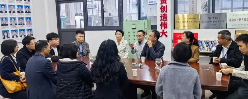 福建、吉林、遼寧省總工會勞動和經(jīng)濟工作部相關(guān)同志,我院工匠學(xué)院、黨政辦公室、工會、教務(wù)處、相關(guān)二級學(xué)院負責(zé)人及教師代表參加調(diào)研交流。