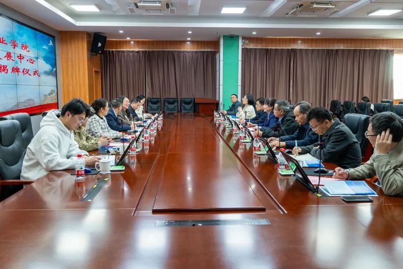 會(huì)上,陳群院長與林一斌主任共同為鄉(xiāng)村振興服務(wù)中心揭牌,全體與會(huì)人員合影留念。