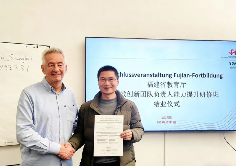 為系統(tǒng)汲取德國(guó)職業(yè)教育先進(jìn)理念與成功經(jīng)驗(yàn),推動(dòng)新能源汽車技術(shù)專業(yè)建設(shè)與人才培養(yǎng)模式改革,2025年11月30日至12月20日,我院汽車學(xué)院院長(zhǎng)、新能源汽車技術(shù)省級(jí)職教創(chuàng)新團(tuán)隊(duì)負(fù)責(zé)人蘇慶列老師赴德國(guó)參加福建省教育廳組織的“職教創(chuàng)新團(tuán)隊(duì)負(fù)責(zé)人能力提升專題研修”。本次研修團(tuán)由省內(nèi)多所院校的職教團(tuán)隊(duì)負(fù)責(zé)人組成,通過為期二十一天的理論學(xué)習(xí)、機(jī)構(gòu)探訪與深度交流,聚焦德國(guó)“雙元制”職業(yè)教育體系的核心要義與實(shí)施路徑。
