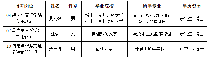 按照《關(guān)于印發(fā)<福建省省屬事業(yè)單位公開招聘工作人員考試暫行辦法>的通知》(閩人發(fā)〔2006〕11號)和《2025年福建船政交通職業(yè)學(xué)院招聘總量控制高層次人才方案》等文件要求,經(jīng)報名、面試、體檢、考核等有關(guān)程序,經(jīng)學(xué)校會議集體研究,確定吳光強等3人為部分崗位擬聘用人員,現(xiàn)予以公示。