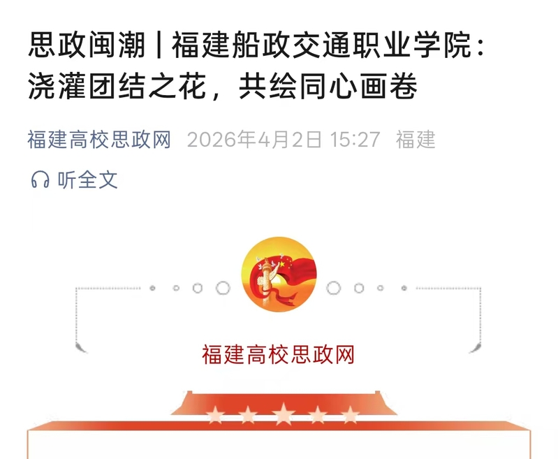 近日,學(xué)習(xí)強(qiáng)國(guó)福建學(xué)習(xí)平臺(tái)、福建高校思政網(wǎng)、新福建等主流媒體發(fā)布《澆灌團(tuán)結(jié)之花 共繪同心畫(huà)卷——福建船政交通職業(yè)學(xué)院開(kāi)展“鑄牢中華民族共同體意識(shí)主題月”系列活動(dòng)》,報(bào)道學(xué)院圍繞“鑄牢中華民族共同體意識(shí)”主線,精心組織開(kāi)展“鑄牢中華民族共同體意識(shí)主題月”系列活動(dòng)?;顒?dòng)開(kāi)展以來(lái),學(xué)院從座談交流、理論宣講、文化浸潤(rùn)、實(shí)踐體驗(yàn)、紅色教育五個(gè)維度精準(zhǔn)發(fā)力,組織全院師生廣泛參與、深度互動(dòng),進(jìn)一步凝聚起中華民族一家親、同心共筑中國(guó)夢(mèng)的強(qiáng)大合力。