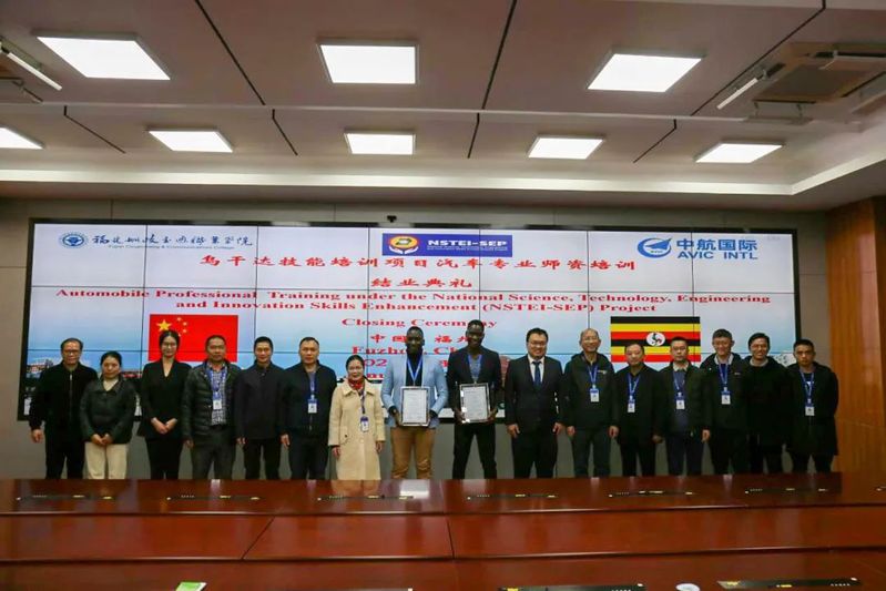 中航國際成套設(shè)備有限公司職業(yè)教育部部門經(jīng)理助理徐華京先生,學院教務(wù)處、科技處、對外交流中心等部門負責人參加了結(jié)業(yè)典禮,并與全體烏干達學員一同合影留念。