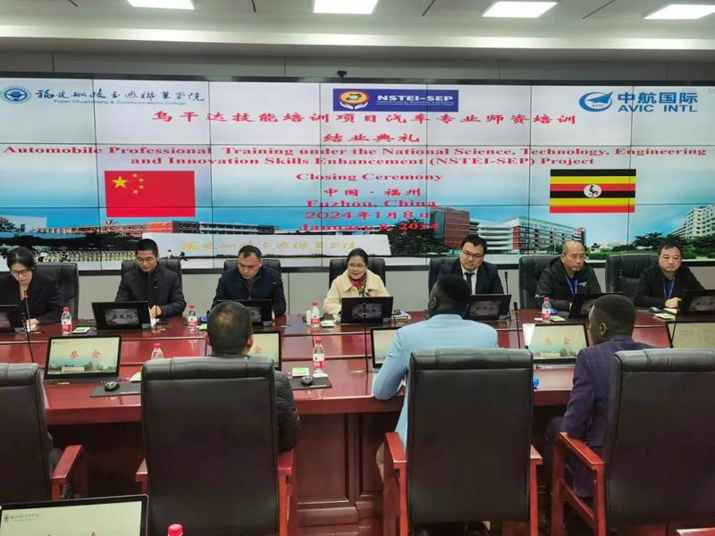 近日,我院在行政樓六樓會議室舉辦烏干達技能培訓項目汽車維修專業(yè)師資培訓結(jié)業(yè)典禮。學院黨委委員、副院長陳艷紅出席典禮并致辭,結(jié)業(yè)典禮由汽車學院院長蘇慶列主持。