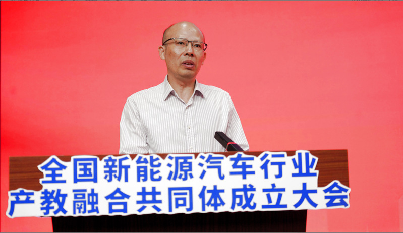 陳宜大書記在致辭中,對前來參會的各位領導、嘉賓表示歡迎,他指出學院將以全國新能源汽車行業(yè)產教融合共同體成立為契機,不斷深化內涵、拓展外延,鞏固和拓展教育鏈、產業(yè)鏈、人才鏈、創(chuàng)新鏈有機銜接,在產教融合服務新能源汽車高質量發(fā)展上作出更大作為。