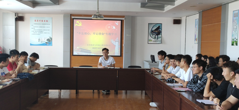 2019年10月15日,安全技術(shù)與環(huán)境工程系在學(xué)生中開展“不忘初心、牢記使命”主題教育學(xué)習(xí),此次學(xué)習(xí)由系團(tuán)總支書記牟鵬飛帶領(lǐng)安全技術(shù)與環(huán)境工程系入黨積極分子以及預(yù)備黨員進(jìn)行集中學(xué)習(xí)。