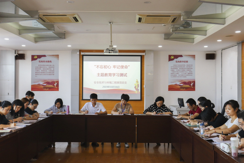 為扎實(shí)推進(jìn)“不忘初心、牢記使命”主題教育,全面檢驗(yàn)黨員干部近期的實(shí)際學(xué)習(xí)成效,10月16日下午,安全技術(shù)與環(huán)境工程系黨總支開展“不忘初心、牢記使命”主題教育測試,總支全體黨員參加。