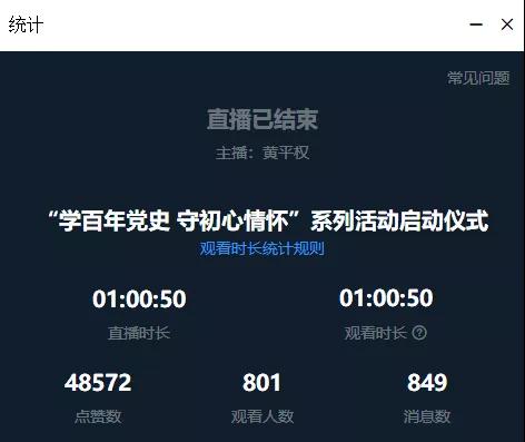 本次“學(xué)百年黨史,守初心情懷”啟動儀式共計801人參與,互動次數(shù)達(dá)849次,點贊數(shù)達(dá)48572次,同學(xué)們積極參與,反響熱烈,取得了圓滿成功!