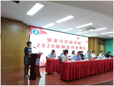 安全與環(huán)境學院副院長(主持工作)陳明仙副教授發(fā)表了熱情洋溢的致辭。他代表安全與環(huán)境學院熱烈歡迎新同學們的到來,并用了兩句話勉勵2020級新生:一是滴水匯聚而成江河,百川歸海方成其大。安全與環(huán)境學院的師生具有高度的責任感,還有神圣的使命感,希望2020級的新同學,能夠快速融入安全與環(huán)境學院大家庭,一同匯聚成奔涌的河流,去迎接星辰大海。二是星光不負趕路人,時光不負有心人。希望同學在安全與環(huán)境學院的三年時光,能夠不負青春、不負夢想,學有所成、業(yè)有所精,成為能夠持續(xù)擔當社會需求使命、德技并修的大國工匠。