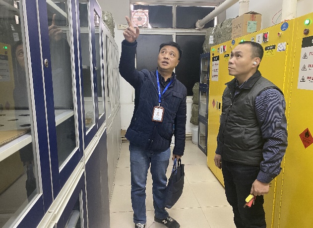 2022年元旦臨近,為了進一步鞏固平安校園創(chuàng)建成果,安全與環(huán)境學院實訓(xùn)中心認真組織開展實驗(訓(xùn))室安全檢查工作。2021年12月31日,鄭雪琴書記、陳明仙院長、陳榕副院長及學院實訓(xùn)中心全體人員,對實驗(訓(xùn))室的水、電、氣、門窗和設(shè)備等進行安全隱患排查。特別是對化學品、易燃易爆等危險品以及消防防盜設(shè)施的重點排查。