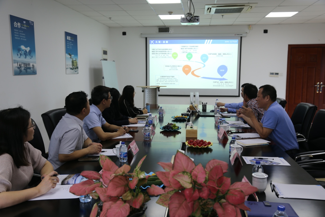 隨后陳明仙院長一行來到久策大廈,與福建久策氣體股份有限公司總裁何經(jīng)余進(jìn)行了交流。