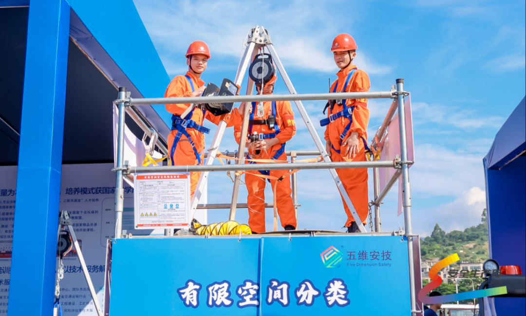福建船政交通職業(yè)學院作為唯一參展高校,受邀在“產學研”專區(qū)開展專項活動,利用與合作企業(yè)研發(fā)的有限空間作業(yè)平臺進行標準化安全訓練示范演示,并展出化工、冶金等行業(yè)個體防護用品方案。