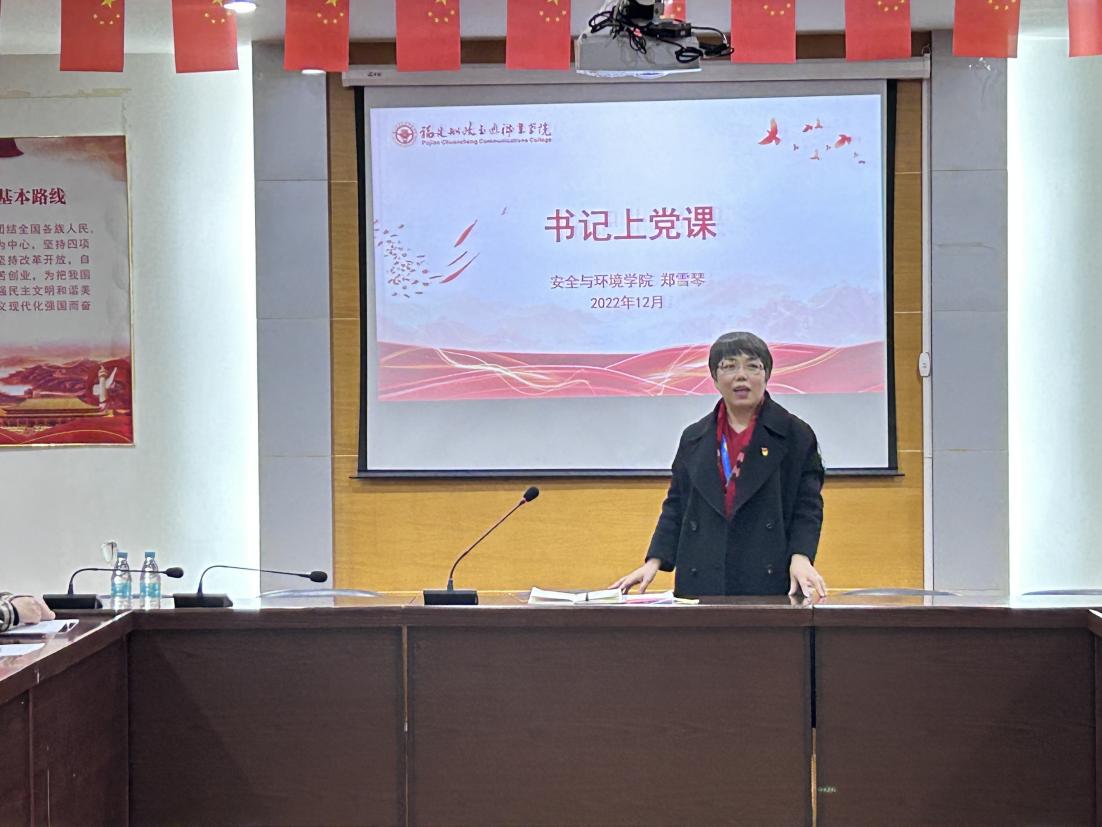 12月14日下午,安全與環(huán)境學院在創(chuàng)新樓909室組織開展“黨總支書記講黨課”活動。安全與環(huán)境學院黨總支書記鄭雪琴以《讀懂黨的二十大報告》為題,為黨員教師和學生黨員、入黨積極分子上了一堂生動的主題黨課。