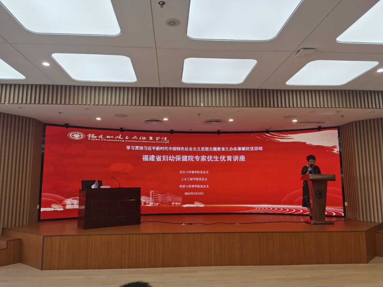 為深入開展學(xué)習(xí)貫徹習(xí)近平新時代中國特色社會主義思想主題教育,安全與環(huán)境學(xué)院注重把“辦實事解民憂”貫穿主題教育全過程,結(jié)合民生所盼,5月10日我院與福建省婦幼保健院產(chǎn)科開展黨建共建活動,邀請福建省婦幼保健院產(chǎn)科方專集副主任醫(yī)師、張華樂主治醫(yī)師為我校教師開展優(yōu)生優(yōu)育講座。講座由安全與環(huán)境學(xué)院黨總支書記鄭雪琴主持。