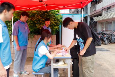 志愿者們早早地做好準(zhǔn)備工作