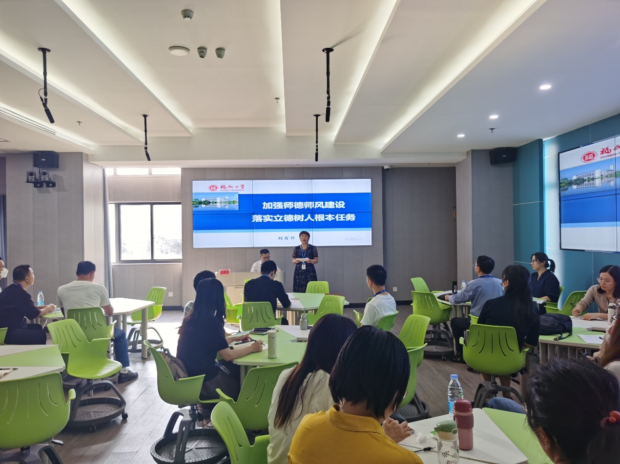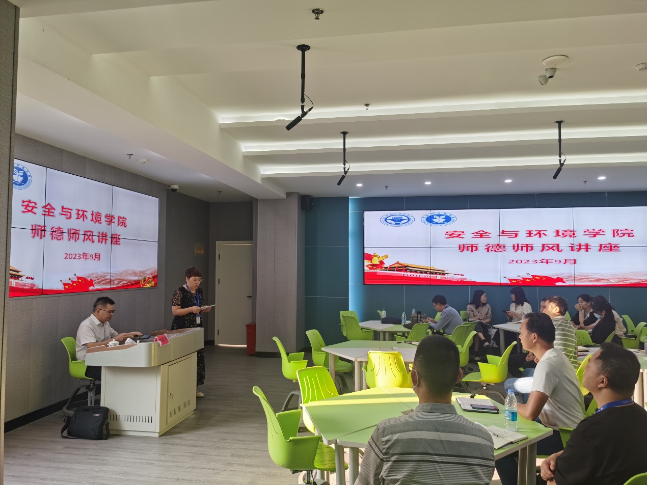 為深入學(xué)習(xí)貫徹習(xí)近平新時(shí)代中國特色社會(huì)主義思想和黨的二十大精神,進(jìn)一步弘揚(yáng)高尚師德風(fēng)范,涵養(yǎng)潛心立德樹人的優(yōu)良師風(fēng),2023年9月27日,安全與環(huán)境學(xué)院全體教職工在藝新樓二樓公共產(chǎn)教融合基地宣教室舉辦師德師風(fēng)專題講座,邀請(qǐng)福州大學(xué)馬克思主義學(xué)院副院長劉有升教授來校授課。此次講座由安全與環(huán)境學(xué)院黨總支書記鄭雪琴主持。