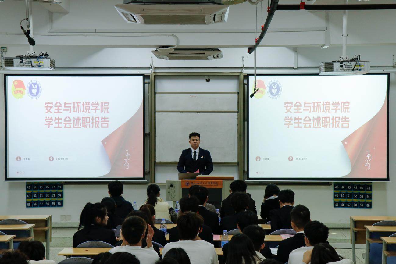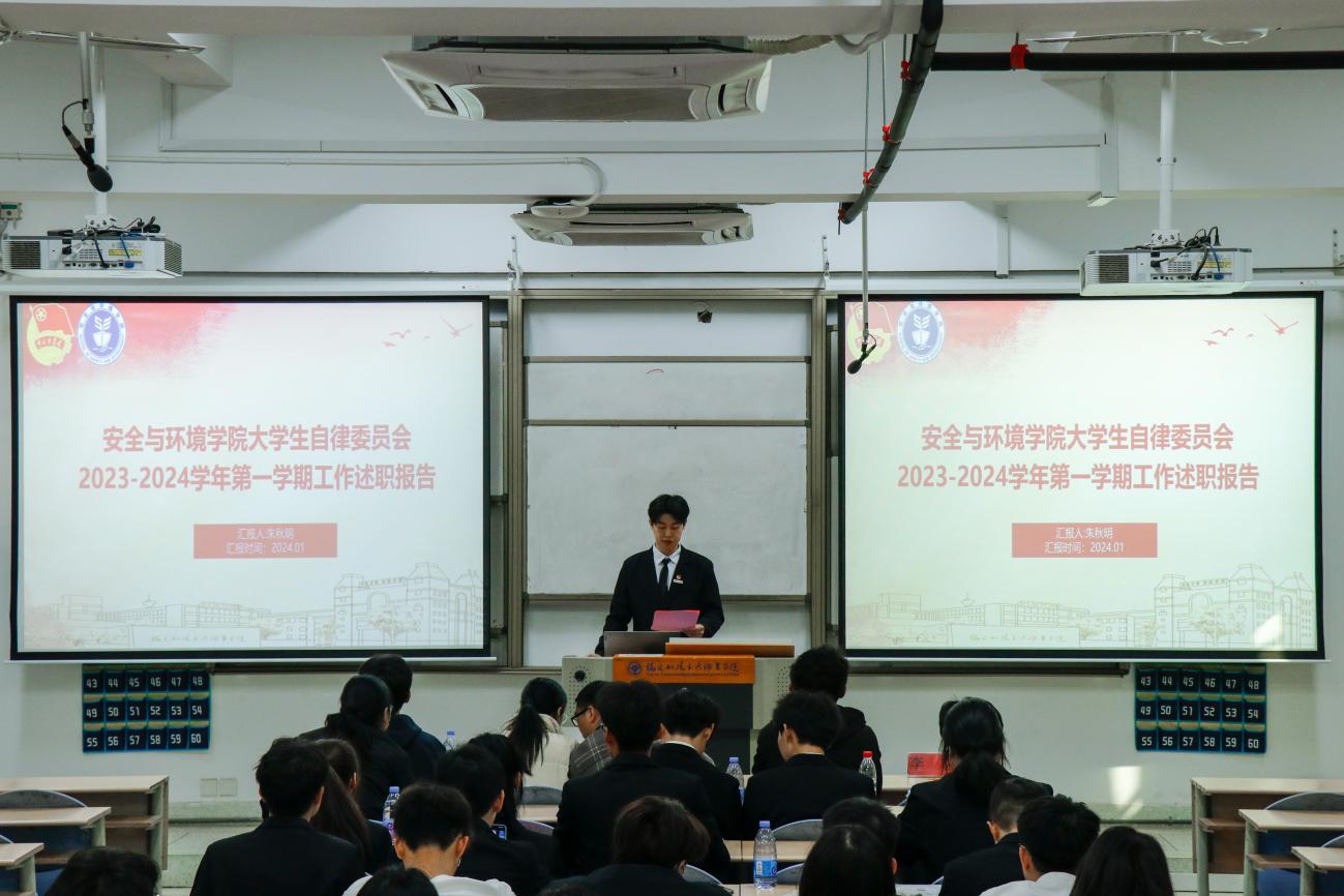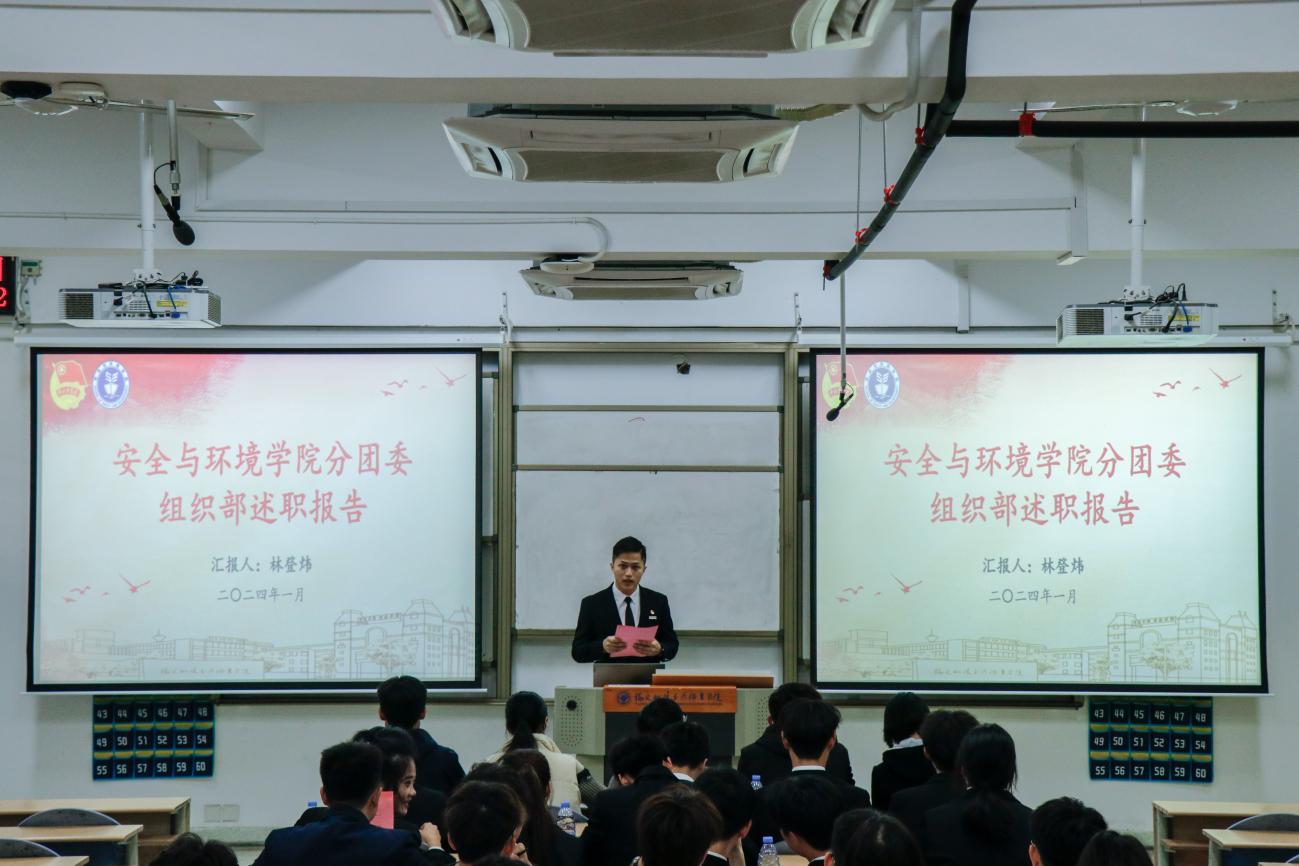 為深入學(xué)習(xí)貫徹習(xí)近平總書記關(guān)于青年工作的重要思想,進(jìn)一步推動學(xué)生組織建設(shè),提高學(xué)生干部綜合素質(zhì),總結(jié)本學(xué)年工作實(shí)效,規(guī)劃下一年度工作,2024年1月2日安全與環(huán)境學(xué)院在創(chuàng)新樓201教室組織召開團(tuán)委學(xué)生干部述職大會。安全與環(huán)境學(xué)院團(tuán)委書記彭志允、團(tuán)委組織委員張曉珊、團(tuán)委宣傳委員李花、輔導(dǎo)員牟鵬飛、輔導(dǎo)員何瀚深蒞臨本次會議。
